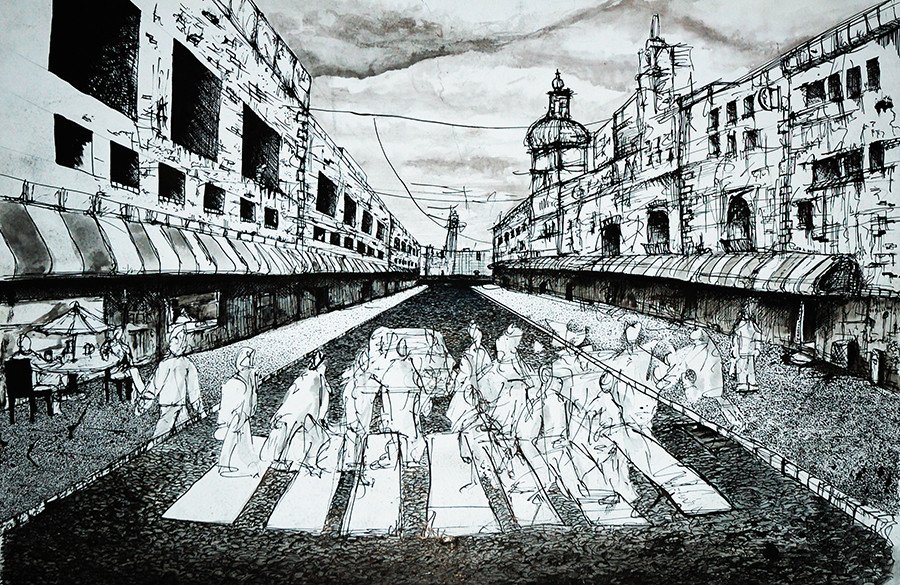 Currently I'm in love pen and ink drawing. I'm switching between indian ink and any pen at the moment but there is something very satisfying about the contrast and line work.