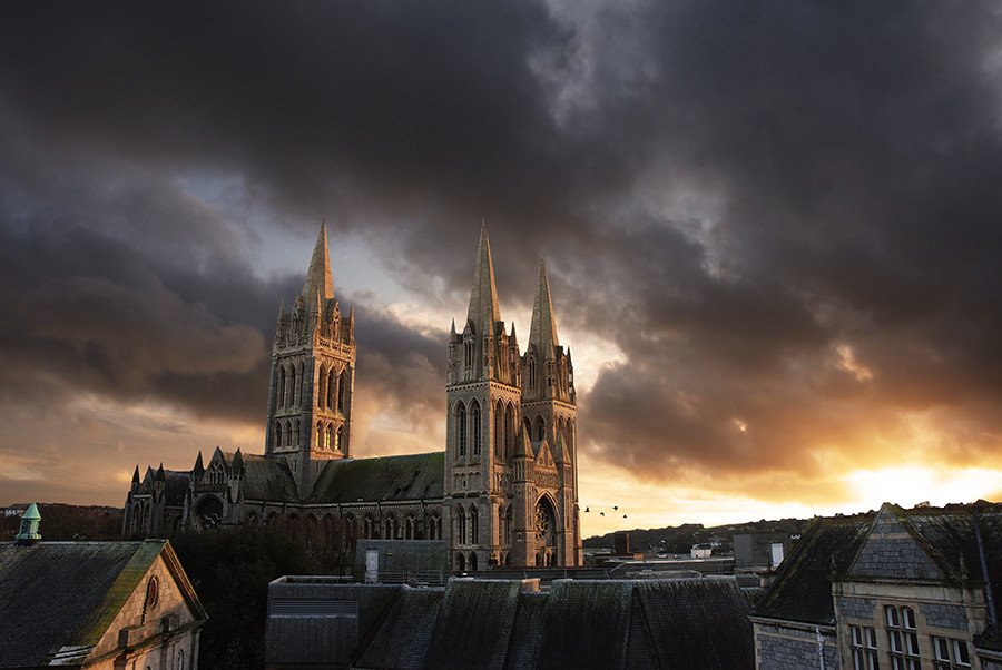 Truro Cathedral at sunset, Cornwall