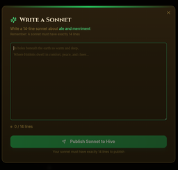 ab-tester(25)•in #hive•58 days agoHobbiton ExpansionToday as the credits refreshed after a 21 hour wait a new exciting feature hit Middle Earth: Prompts so far: 1: Build me an app that's based on the Lord of the ...0$0.00ab-tester(25)•in hive•58 days agoHobbiton ExpansionToday as the credits refreshed after a 21 hour wait a new exciting feature hit Middle Earth: Prompts so far: 1: Build me an app that's based on the Lord of the ...0$0.00