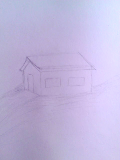 Comencé dibujando el boceto de una casita en una colina.