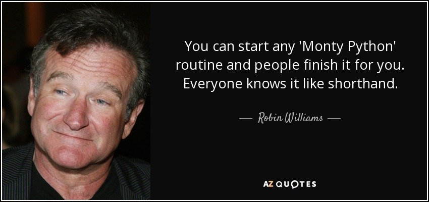 In my opinion, this quote is just a snippet into the phenomenally funny minds that created Monty Python and changed comedy forever.