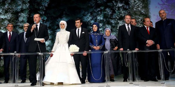 Die Hochzeit von Erdogans Tochter im Mai 2016. Unter den Ehrengästen: die Premierminister von Albanien und Pakistan sowie Bakir Izetbegović, der bosniakische unter den drei Präsidenten Bosniens (dritter von rechts, vordere Reihe).