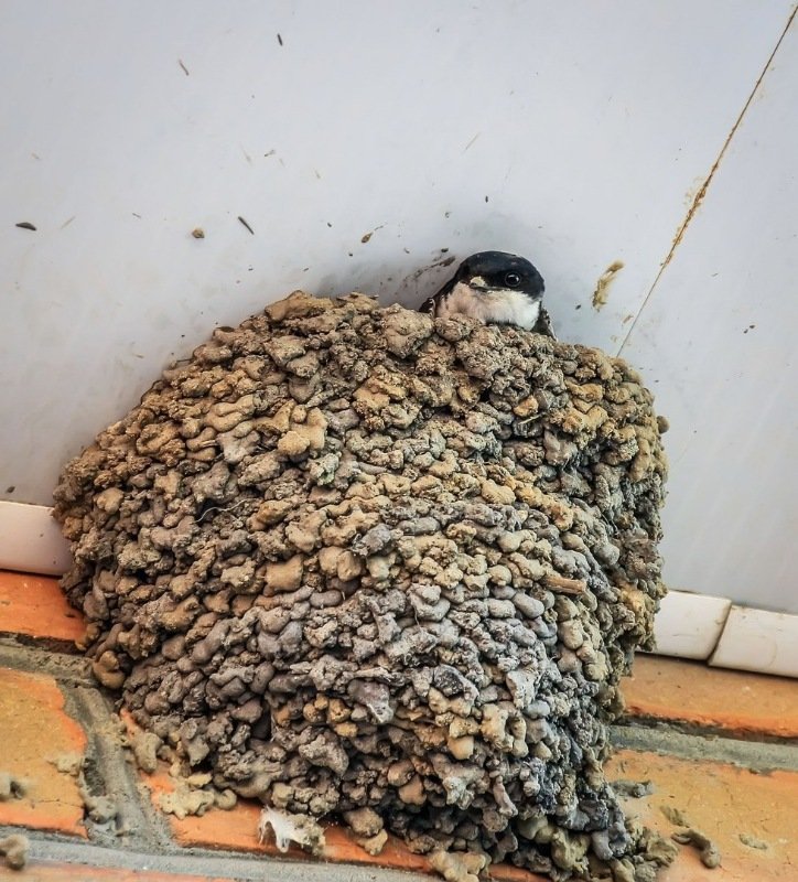 У проворной ласточки впечатляющие навыки строителя и дизайнера. Чего только не сделаешь для того чтобы создать уютной гнёздышко для своей семьи. Натаскала в клюве камушки и вуаля ... дом готов. Осталось только дождаться потомства.