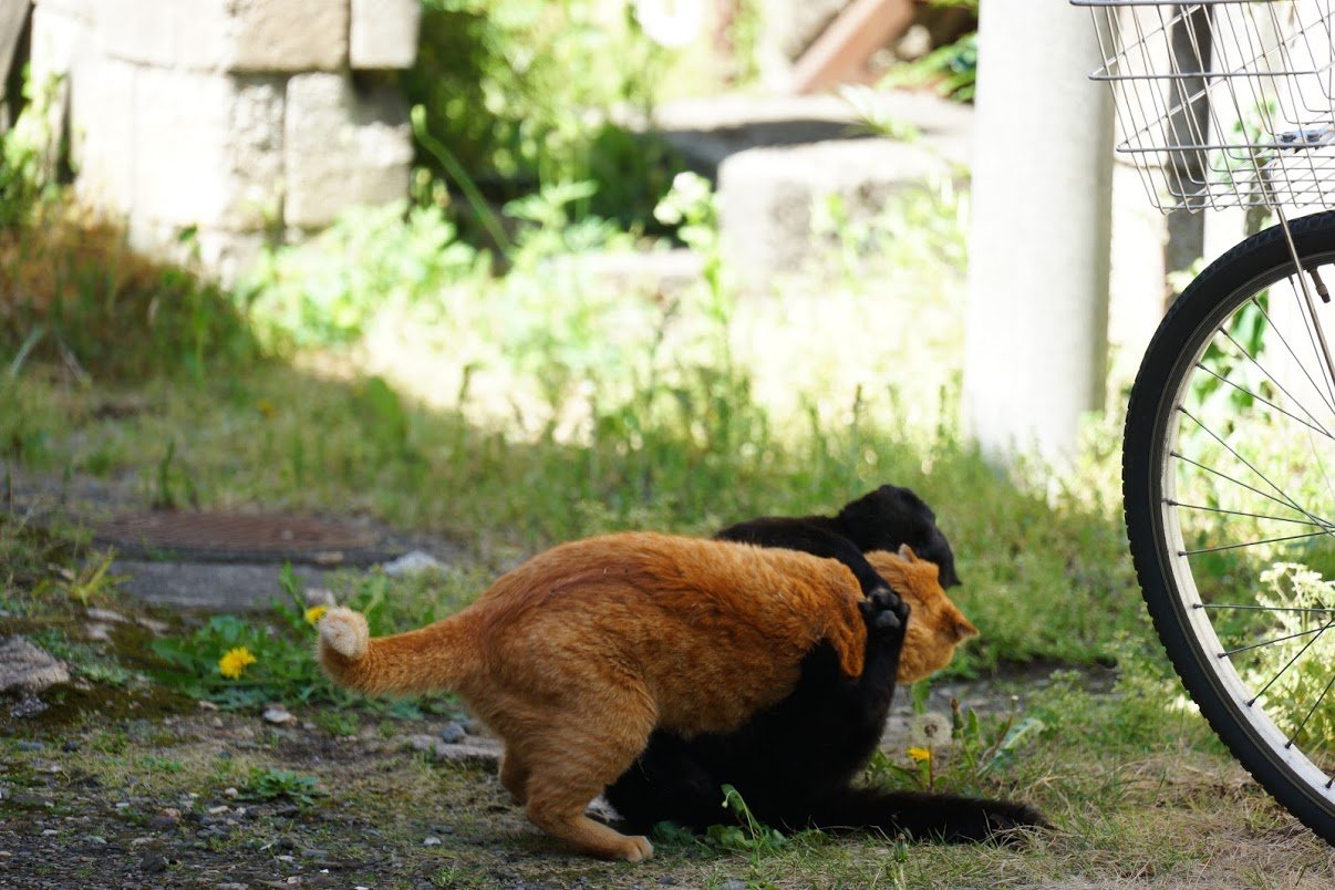 茶トラさんが流石の身体能力というか、バネとやわらかさで有利なポジションを獲りにきてます。