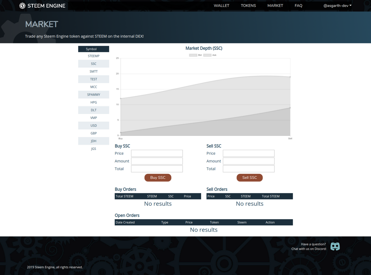 It will also "soon" include an internal market, very similar to the existing STEEM/SBD market, to allow all tokens created on the platform to be traded against STEEM. Special thanks to @asgarth for help on the market user interface design and development shown below. Testing on the market has already begun.