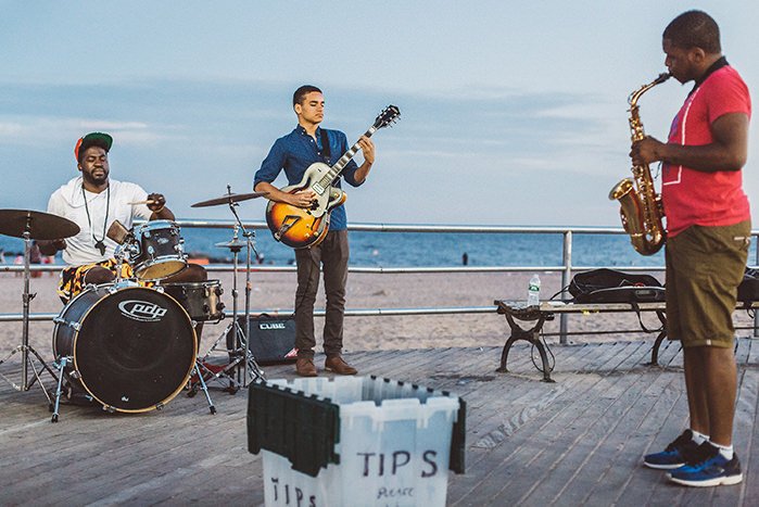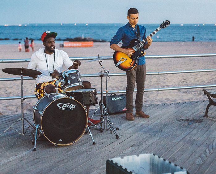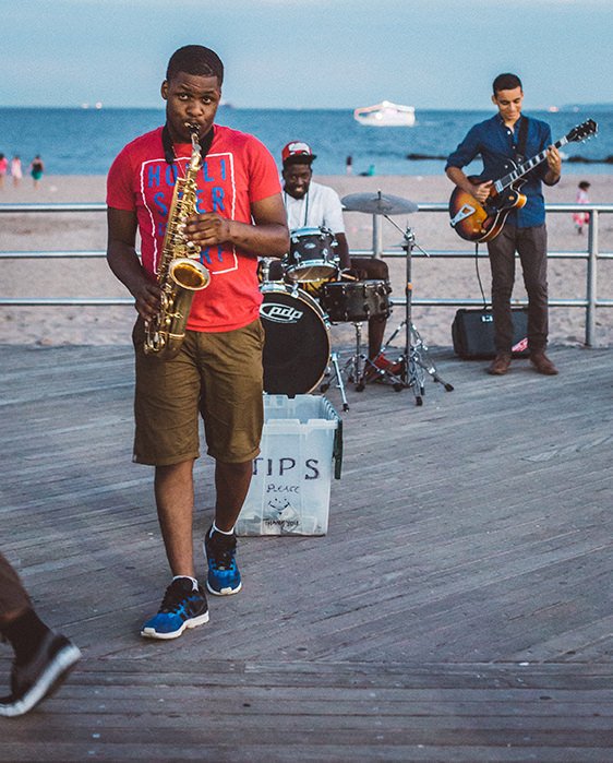 Local band preforming on the Coney Island boardwalk Brooklyn ,NY