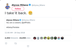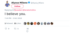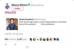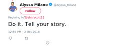 Fri Sep 28 17:49:32 +0000 2018 @alyssa.milano tweeted.RT @THR: .@AlyssaMilano on the Ford-Kavanaugh hearing: "This is exactly the reason why we don’t come forwa...