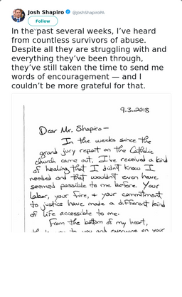 Sat Sep 29 01:10:45 +0000 2018 @alyssa.milano tweeted.RT @JoshShapiroPA: In the past several weeks, I’ve heard from countless survivors of abuse. Despite all th...