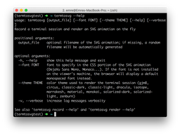 emrebeyler(25)•in #steemhunt•2732 days agotermtosvg - Record terminal sessions as SVG animationstermtosvg Record terminal sessions as SVG animations --- Screenshots | View Image | View Image | | - | - | | --- Hunter's comment termtosvg is a command line ap...10emrebeyler(25)•in steemhunt•2732 days agotermtosvg - Record terminal sessions as SVG animationstermtosvg Record terminal sessions as SVG animations --- Screenshots | View Image | View Image | | - | - | | --- Hunter's comment termtosvg is a command line ap...10