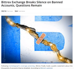 andreashauser(25)•in #news•3007 days agoAttention Bittrex Users!You might want to immediately withdraw all your coins from Bittrex, the reason being that random accounts are currently being frozen for no apparent reason. I p...2andreashauser(25)•in news•3007 days agoAttention Bittrex Users!You might want to immediately withdraw all your coins from Bittrex, the reason being that random accounts are currently being frozen for no apparent reason. I p...2