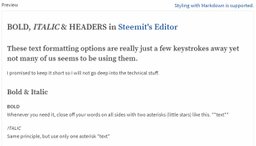 andrewsanderson(25)•in #steemit•3464 days agoSimplest Text Formatting Options for Better Looking Posts in 2 MinutesBOLD, ITALIC & HEADERS in Steemit's Editor These text formatting options are really just a few keystrokes away yet not many of us seem to be using them. I promi...6andrewsanderson(25)•in steemit•3464 days agoSimplest Text Formatting Options for Better Looking Posts in 2 MinutesBOLD, ITALIC & HEADERS in Steemit's Editor These text formatting options are really just a few keystrokes away yet not many of us seem to be using them. I promi...6