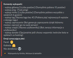 animek66(25)•in #discord•2746 days agoWykoparka - Discordowy bot dla fanów wykopu!Wykoparka [ENG] Wykoparka is simple discord bot created for users of wykop.pl. Github repository: github.com Wykoparka [PL] Pewnego dnia siedząc na discordzie w...97$0.05animek66(25)•in discord•2746 days agoWykoparka - Discordowy bot dla fanów wykopu!Wykoparka [ENG] Wykoparka is simple discord bot created for users of wykop.pl. Github repository: github.com Wykoparka [PL] Pewnego dnia siedząc na discordzie w...97$0.05