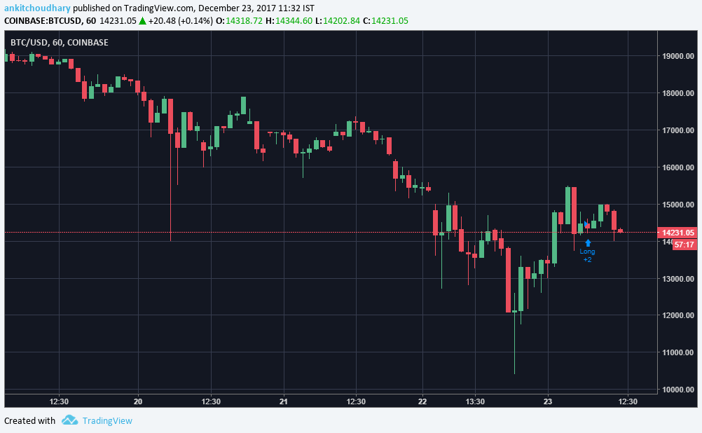 Intraday Tips: BUY BTC at $14231 with a target of $15260 and stop loss of $13530