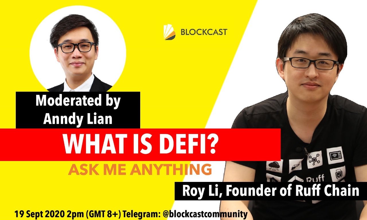 Anndy: Welcome to our ASK ME ANYTHING (AMA) segment. My name is Anndy Lian, book author, blockchain advocate and currently is the Advisory Board Member of Hyundai DAC. Most people know me by the work I do for the government. Today at Blockcast.cc, we have Roy Li, he is a pioneer in this space. He will be here with me to have a chat about DEFI.