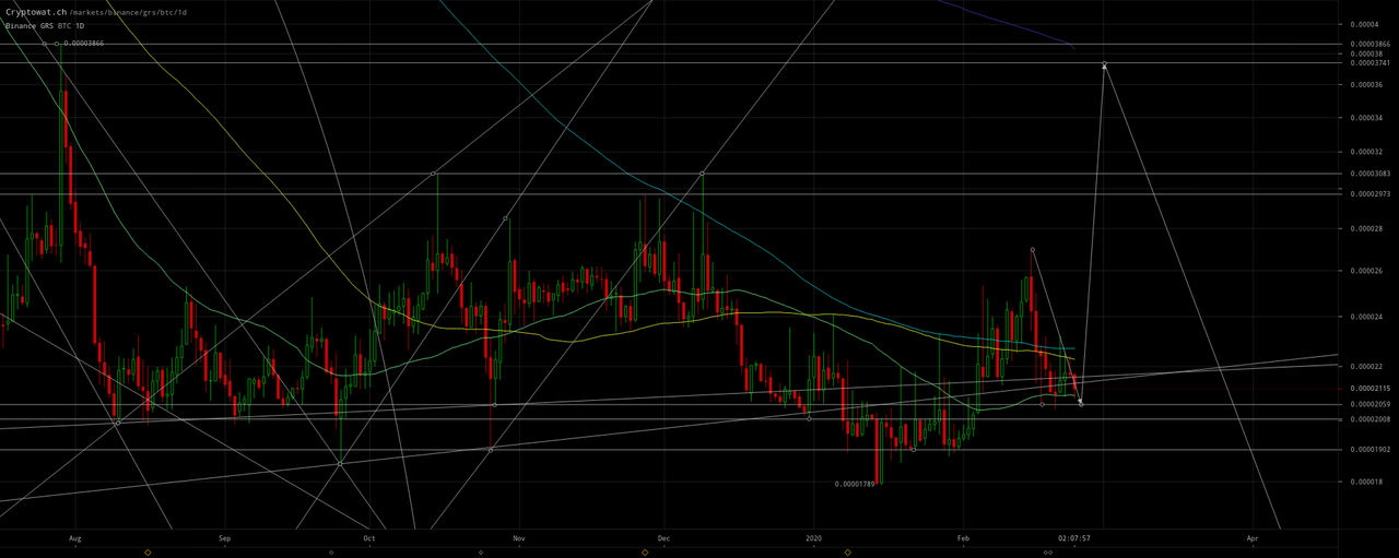 ETH/BTC should bottom ~`0.0255within this day. LTC/BTC likely to bottom0.0070–0.0073on March 1. GRS/BTC may lag a bit and bottom0.000019–0.000020` after March 1.
