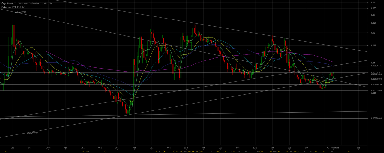 In any case, I doubt LTC/BTC will make it back up to ~`0.014 at the top of the former long-term wedge annotated on my chart, because it already fell out of that wedge and ~0.0093` is the bottom of the wedge. So LTC/BTC is ostensibly just rebounding to test the overhead resistance it broke down out of in August 2019: