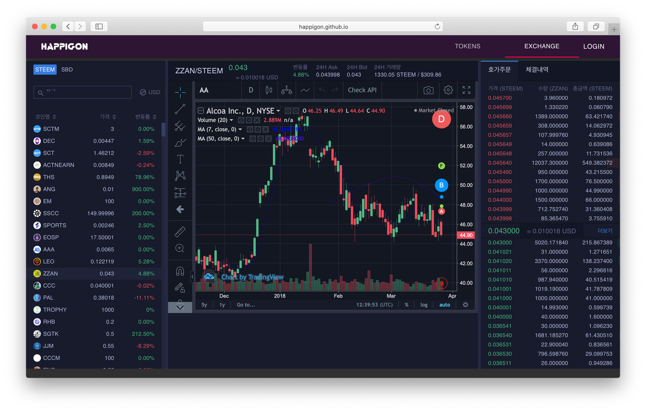최근에 토큰 정보(홀더계정, 오더북, 거래이력)을 볼 수 있는 앱을 의뢰받았었습니다. 참고로 해당 앱 개발은 드랍했습니다. 그런데 개발을 하다 보니 약간의 욕심이 생겼습니다. 그래서 개발하던 코드를 재활용하여 재미있는 앱을 개발했습니다. 앱 이름은 Happigon 입니다.