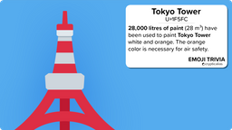crypticalias(25)•in #entertainment•2917 days agoEmoji Trivia #13 🗼 Tokyo TowerWow, that's a lot of paint – and it has to be repainted every 5 years. You can copy and paste this to share the emojitrivia: Tokyo Tower --- 1🤹 Juggling ...0crypticalias(25)•in entertainment•2917 days agoEmoji Trivia #13 🗼 Tokyo TowerWow, that's a lot of paint – and it has to be repainted every 5 years. You can copy and paste this to share the emojitrivia: Tokyo Tower --- 1🤹 Juggling ...0