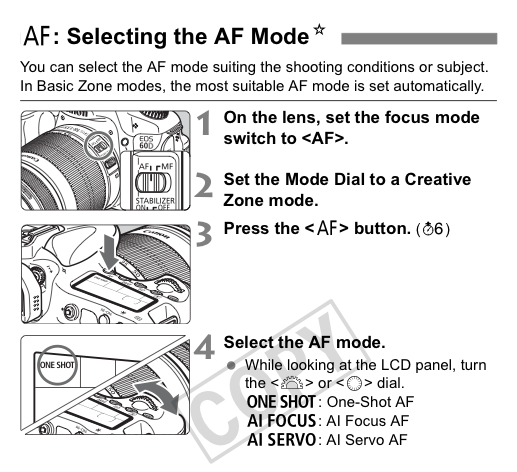 The cameras automatic focus chooses automatically what to put in focus, if the object is moving or not and decides on what to focus and changes automatically to Single-Servo or continuous shooting.