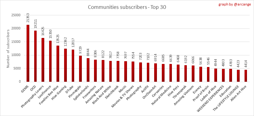 This graph shows the communities with the most subscribers.
