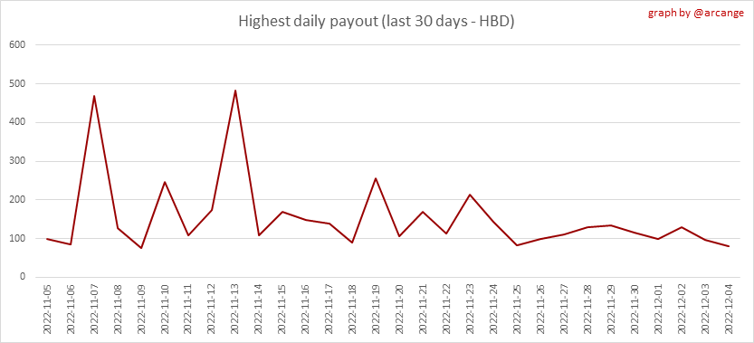 This graph shows the highest reward paid on a post (or comment) for the last 30 days.