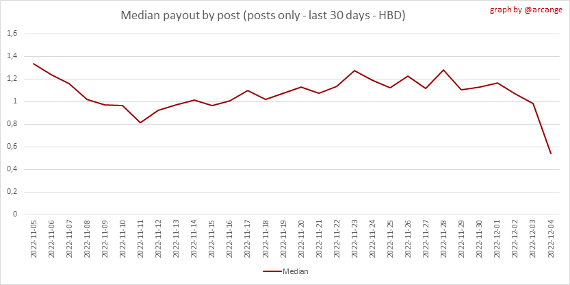 These graphs show the average and median payout per post for the last 30 days.