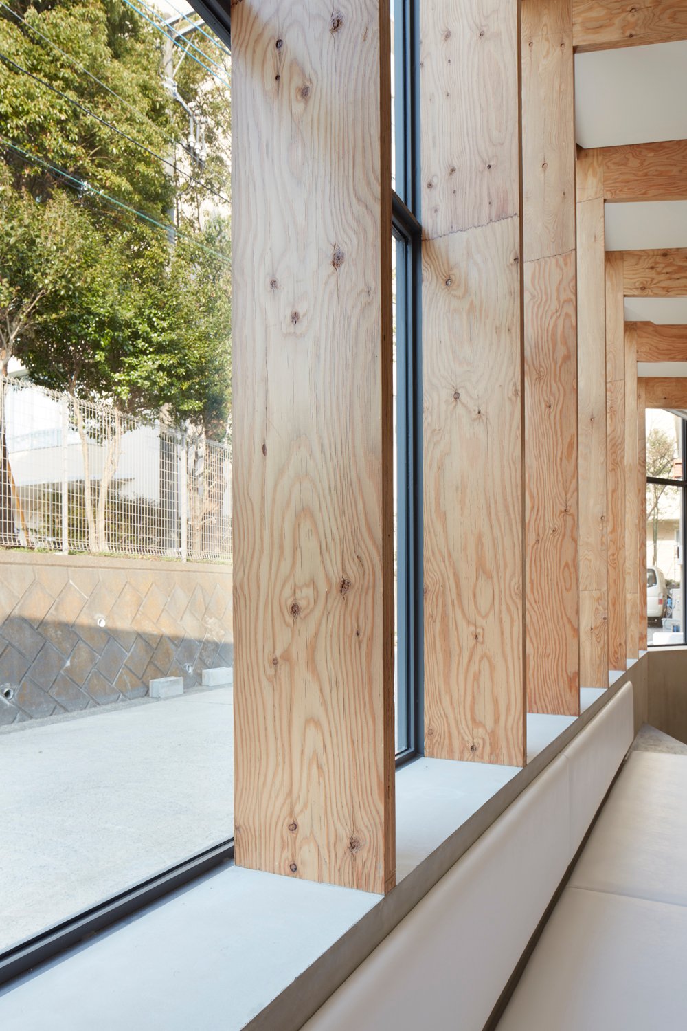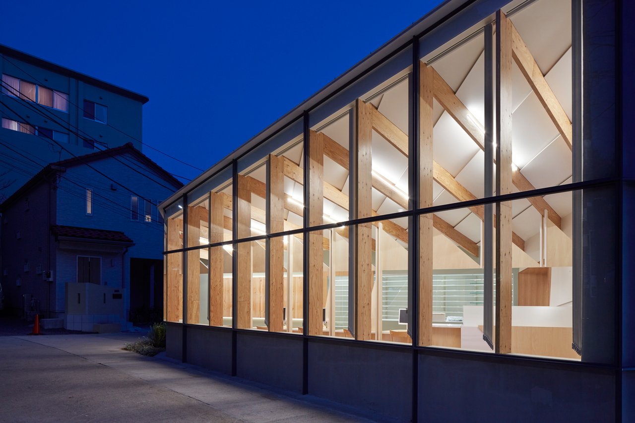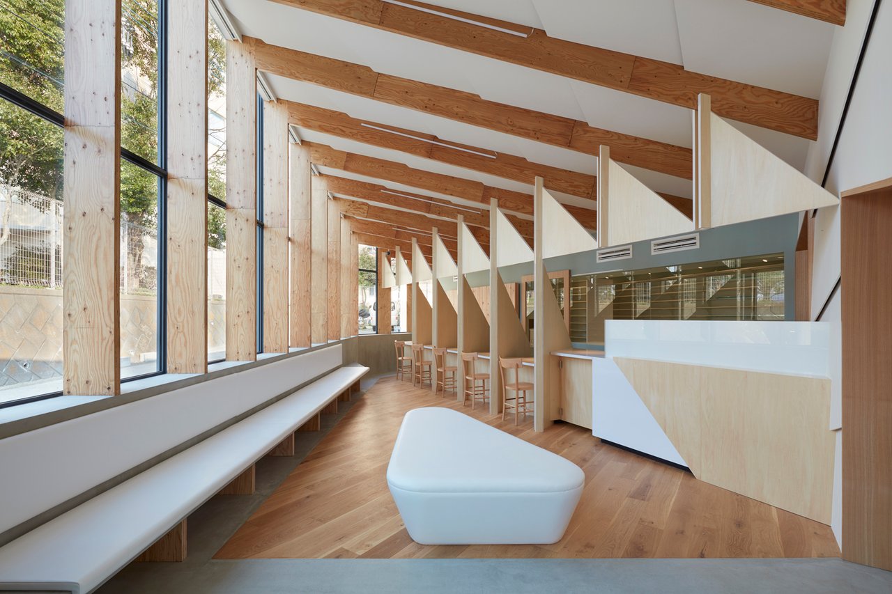 The project is a single-story wood-framed pharmacy located between a highway and a residential neighborhood.