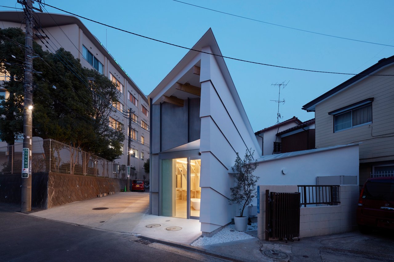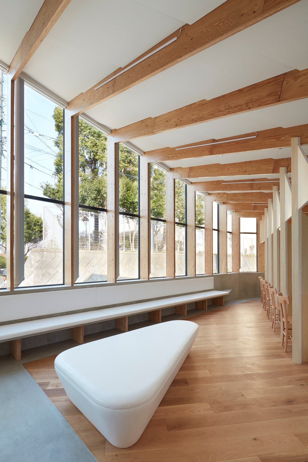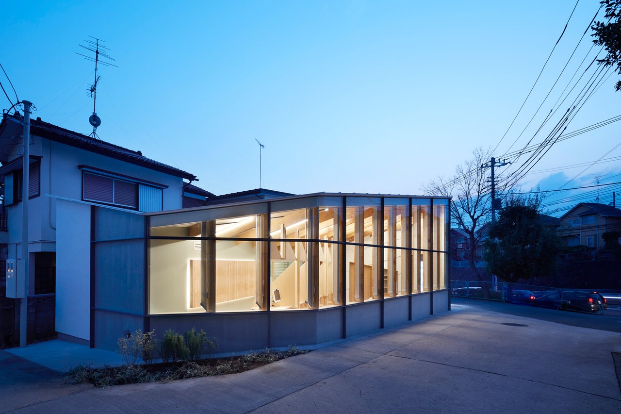 The unified building form negotiates the difference in elevation between the high side of the roadway and low side of the residential area, considering both visibility and the surrounding context.