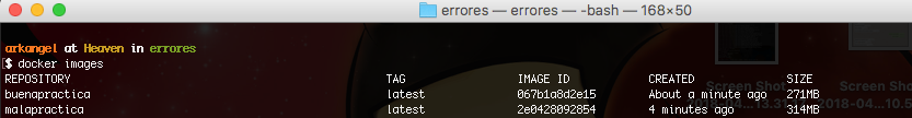 Solo por los pequeños ajuste de no crear un RUN por apt-get conseguimos reducir el tamaño de nuestra imagen 43 MB no se si o crean ustedes pero para mi me parece una gran diferencia, si lo calculamos en floppys estaríamos hablando que se ocuparían 30 para almacenar la diferencia, ok eso solo fue un broma ya nadie usa floppys de 3.5 jajaja.