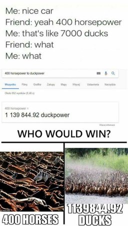 arre(25)•in #dmania•2916 days agoHorsepower VS DuckpowerView post on dMania...20$0.00arre(25)•in dmania•2916 days agoHorsepower VS DuckpowerView post on dMania...20$0.00