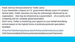 artmindvoice(25)•in #politics•2915 days agoA Public Service Announcement to Twitter Users - (political satire)This is my response to the recent emails that went out this week to some Twitter users (myself included) regarding notification of my retweeting or linking twee...1artmindvoice(25)•in politics•2915 days agoA Public Service Announcement to Twitter Users - (political satire)This is my response to the recent emails that went out this week to some Twitter users (myself included) regarding notification of my retweeting or linking twee...1