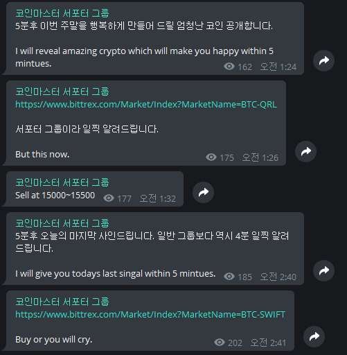 하지만 펌핑방장은 추잡하게 0.015에서 0.0297 (97%)의 수익이라고 뻔뻔하게 구라를 칩니다. ㅋㅋㅋ