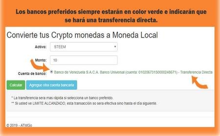 Es muy fácil, sólo debe seleccionar el activo a cambiar, la cantidad y el banco. Luego darle click en calcular
