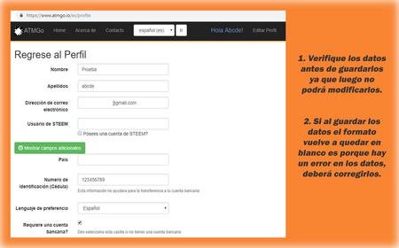 Luego de confirmar el correo ya podrás iniciar sesión en ATM Go con tu usuario y contraseña para ahora completar tus datos personales y cuenta bancaria.