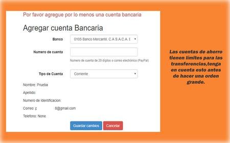 Luego de guardar sus datos personales podrá registrar su cuenta bancaria. Nuestros bancos preferidos son: Banesco , Mercantil, Banco de Venezuela, Banco Nacional de Crédito y Banco Venezolano de crédito.