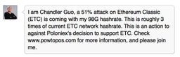 avleo(25)•in #ethereum•3470 days agolink:Miners to Attack Ethereum Classic after Polonix's Listing https://www.cryptocoinsnews.com/miners-attack-ethereum-classic-polonixs-listing/ Chandler Guo, a well-known and respected figure in the Chines...317$0.04avleo(25)•in ethereum•3470 days agolink:Miners to Attack Ethereum Classic after Polonix's Listing https://www.cryptocoinsnews.com/miners-attack-ethereum-classic-polonixs-listing/ Chandler Guo, a well-known and respected figure in the Chines...317$0.04