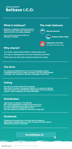 azguard(25)•in #bitcoin•3341 days agoBETBASE ICO BOUNTIESBETBASE ICO BOUNTIES 5 000 000 of shares will be distributed during ICO to bounties which is 5 % of total shares. ----------------------------------------------...50$0.00azguard(25)•in bitcoin•3341 days agoBETBASE ICO BOUNTIESBETBASE ICO BOUNTIES 5 000 000 of shares will be distributed during ICO to bounties which is 5 % of total shares. ----------------------------------------------...50$0.00