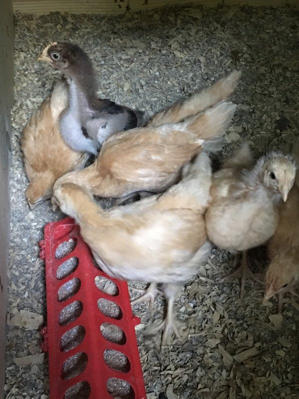 Our previous bunch of hens were all Rhode Island Reds, so we decided to try out Buff Orpingtons this time around. We'll see how good they are at laying eggs.....