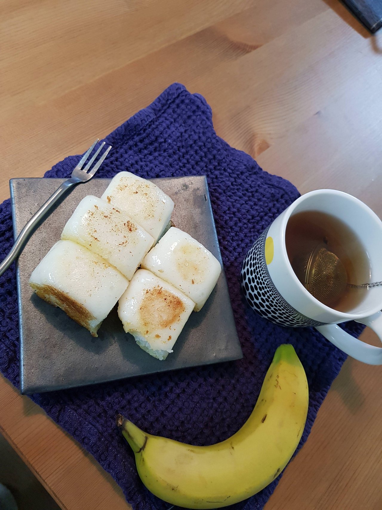 떡 사진은 냉동한 떡을 버터에 살짝 구워 아침대용으로 먹을 때 찍어본 사진입니다.