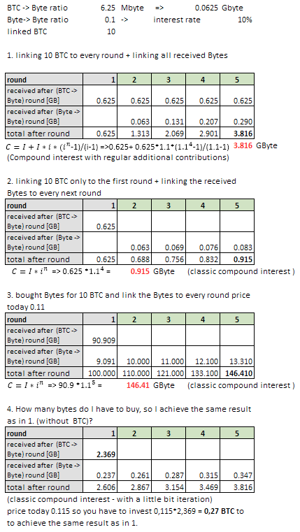 - BTC to Bytes: every 160 BTC gives you 1 GB from the distribution (or 0.00625 GB per BTC).