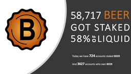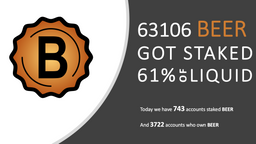 beerlover(25)•in #beer•2209 days agoBeerlover report on staked BEERHey Steeminas, dear BEER lovers More and more Steemians understand the benefit of staking BEER to earn more BEER by doing nothing 61% ob BEER is now staked - le...15beerlover(25)•in beer•2209 days agoBeerlover report on staked BEERHey Steeminas, dear BEER lovers More and more Steemians understand the benefit of staking BEER to earn more BEER by doing nothing 61% ob BEER is now staked - le...15