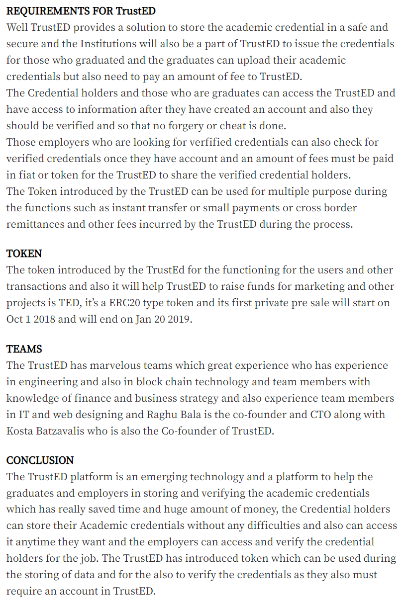 • Whitepaper: https://ico.trusteducation.io/wp-content/uploads/2018/09/TrustED-Whitepaper.pdf