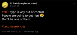 bitbrain(25)•in #hive-167922•1823 days agoPlease please PLEASE, Beware of NFTs!https://mentormarket.io/wp-content/uploads/2020/08/Bit-Brain-image-1.png It’s safe to say that the hype surrounding NFTs has now hit the “ludicrous” phase. It’s...14934$4.13bitbrain(25)•in hive-167922•1823 days agoPlease please PLEASE, Beware of NFTs!https://mentormarket.io/wp-content/uploads/2020/08/Bit-Brain-image-1.png It’s safe to say that the hype surrounding NFTs has now hit the “ludicrous” phase. It’s...14934$4.13