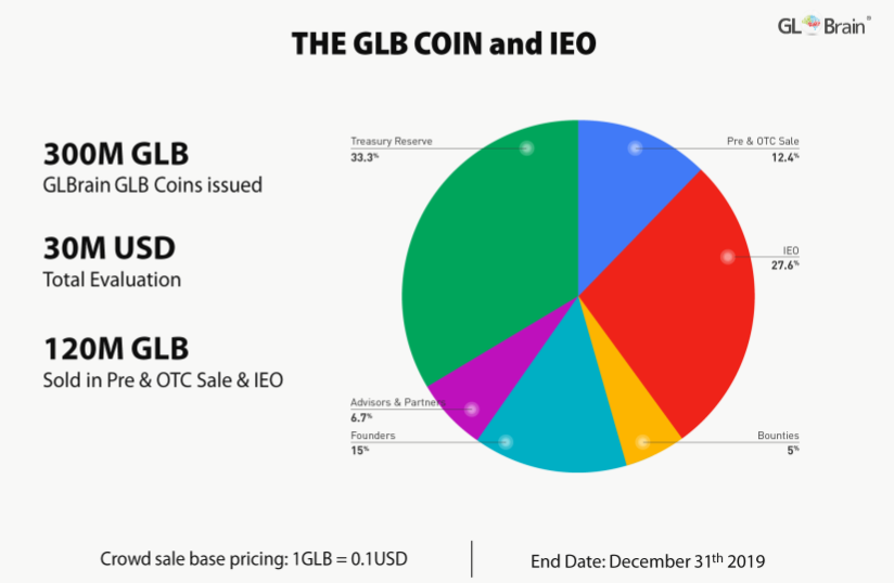 The economy of GLB Coins is a token utility that provides discounted access to his business services GLBrain online platform. GLB supply is fixed at 300,000,000 coins. 40% will be offered in personal and OTC sales and 3 stage IEO campaigns. Since IEO, GLB can trade on multiple exchanges.