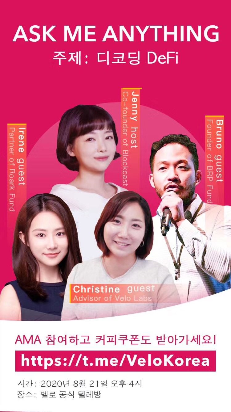 먼저 이렇게 좋은 자리를 만들어 주신 Velo 관계자 분들께 감사드립니다. 오늘 주제인 Defi에 대해서 저는 아직 갈길이 멀다 생각하고 있고, 스스로도 아직 이해도가 많이 부족하다 느끼지만 열심히답변에 임해보도록 하겠습니다.