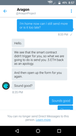 blockgods(25)•in #aragon•3163 days agoScammed by @araqonproject lost 4.47 ETHHello everyone on Steemit about 30 minutes ago I made a pretty bad mistake. I received a message on Twitter from user @AraqonProject earlier, you should notice ...7blockgods(25)•in aragon•3163 days agoScammed by @araqonproject lost 4.47 ETHHello everyone on Steemit about 30 minutes ago I made a pretty bad mistake. I received a message on Twitter from user @AraqonProject earlier, you should notice ...7