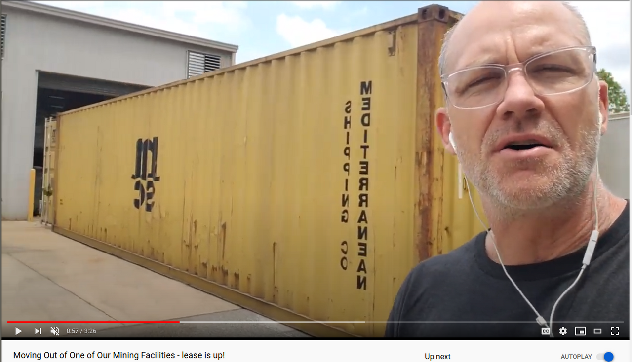 We shut down the mining facility in the leased warehouse space and are consolidating into one location. Planning on taking the existing infrastructure and putting it into a shipping container for mining. This is a good summer project while our ASIC miner utilization is lower right after the Bitcoin halving.