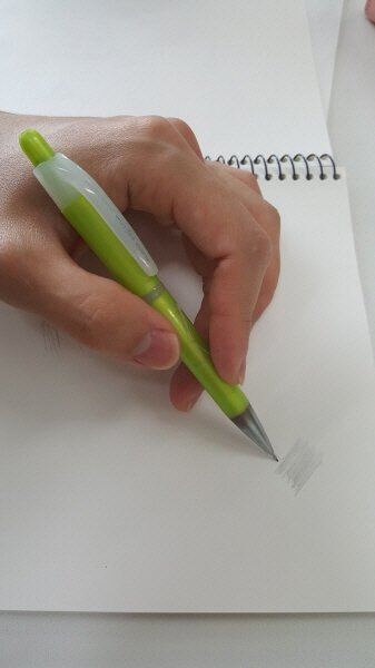 손의 자세는 자신에게 가장 편한 자세가 가장 좋은 자세입니다. 연필을 길게 잡으면 선을 길고 약하게 쓰기 좋고, 연필을 짧게 잡으면 선을 짧고 강하게 쓰기 좋은 편입니다. 대체로 그림을 그릴 때는 글씨를 쓸 때보다는 길게 잡게 됩니다.