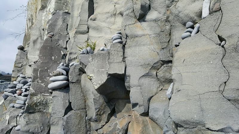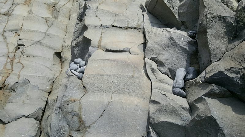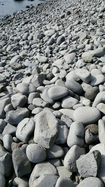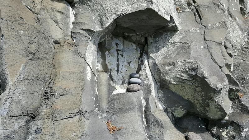 해변을 채우고 있는 돌들이 특징적이었는데요, 이 곳에 왔던 사람들이 주상절리 사이사이에 돌들을 얹고 간 것이 보였어요. 그걸 보자니 귀엽고 웃음이 나와서 사진을 찍어보았네요!