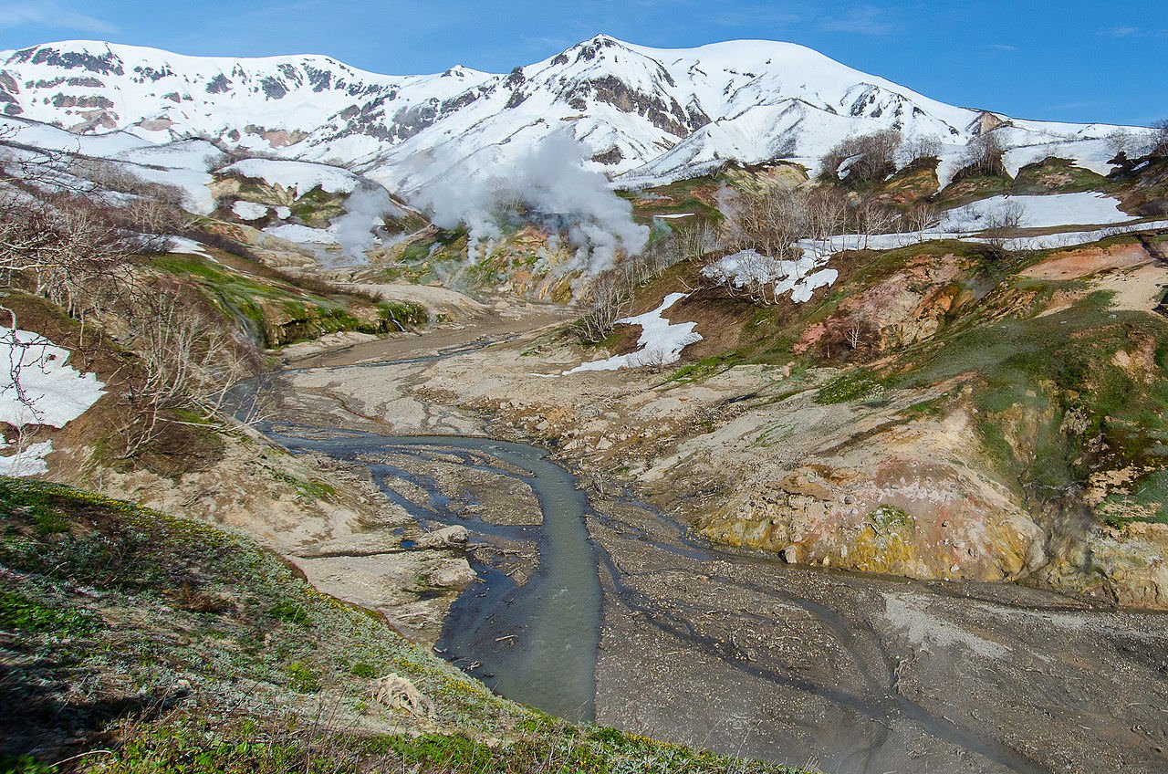 In general, the concentration of volcanoes in Kamchatka is very high, and their side effect is the geysers.